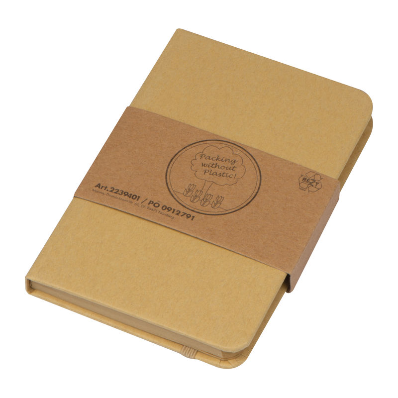 A6 Notebook with craft paper envelope, bookmark, 160 ruled pages, elastic strap and Pen Loop. Your logo will be printed on the book.