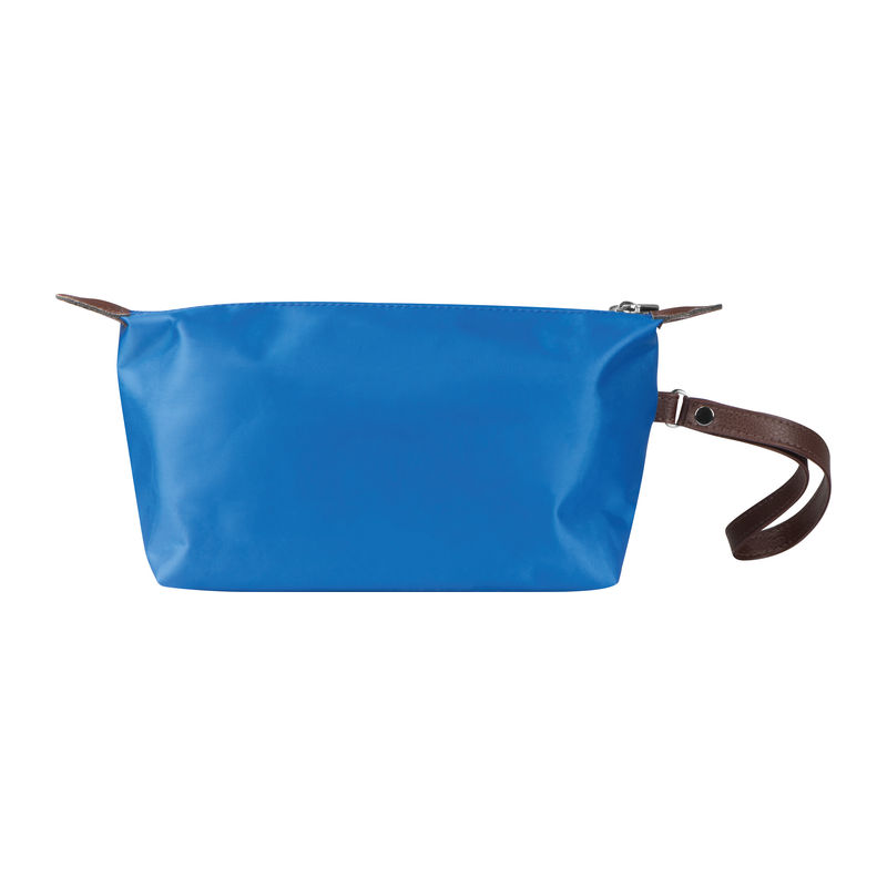 Cosmetic bag with faux leather applications and zipper for closing. Your advertising is printed on the front.