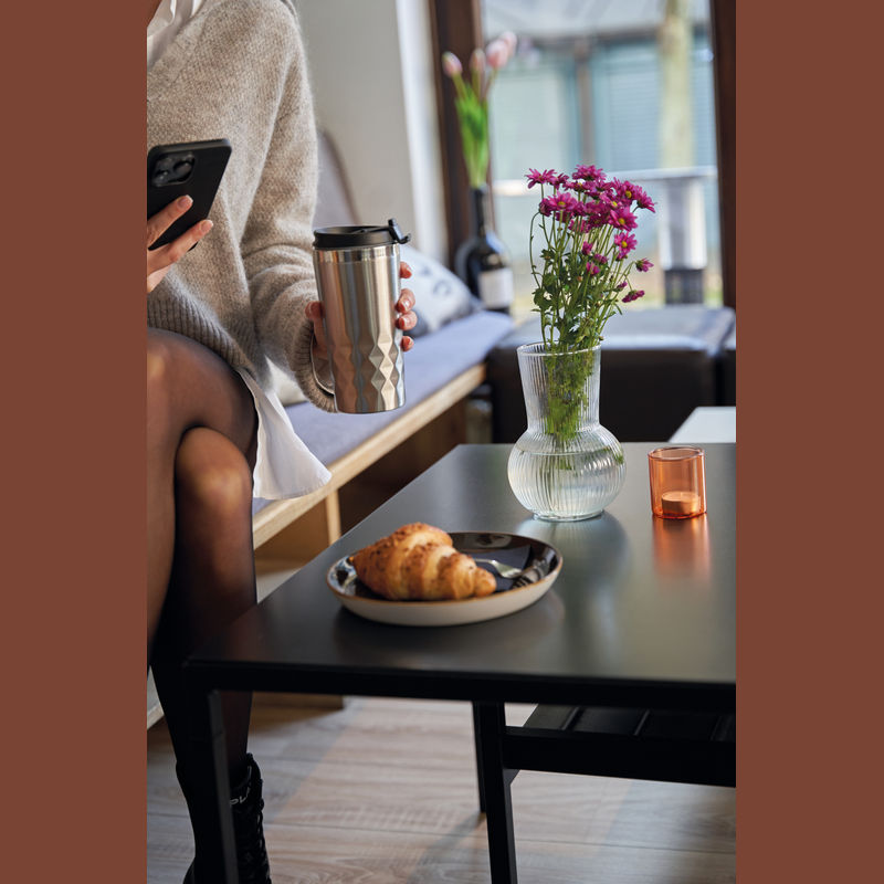 Double walled, leak-proof, non-slip thermo mug made of stainless steel with a capacity of 400 ml. Your logo will be engraved onto the mug.