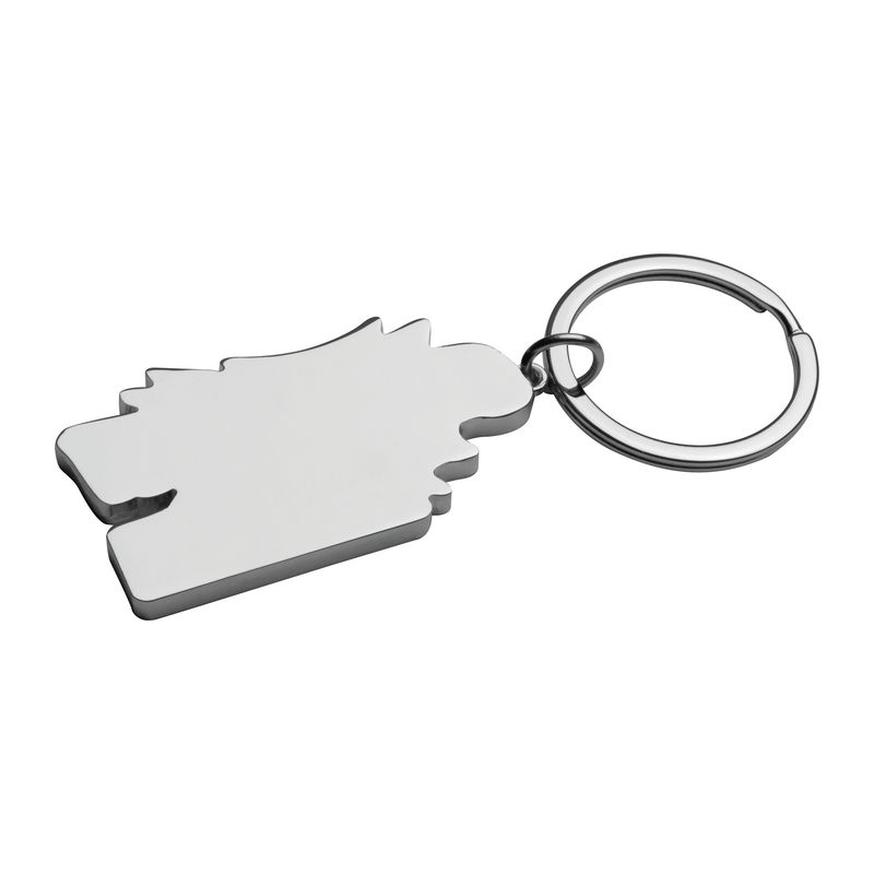 Keyring made of metal with coloured lacquered front. We will engrave your logo on the plate.