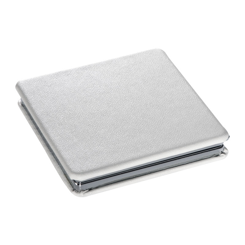 Unbreakable double mirror – how? Made from polished metal. The view is bright – regular on one side, magnified on the other. The white cover outside makes it perfect looking. Your logo will be engraved.