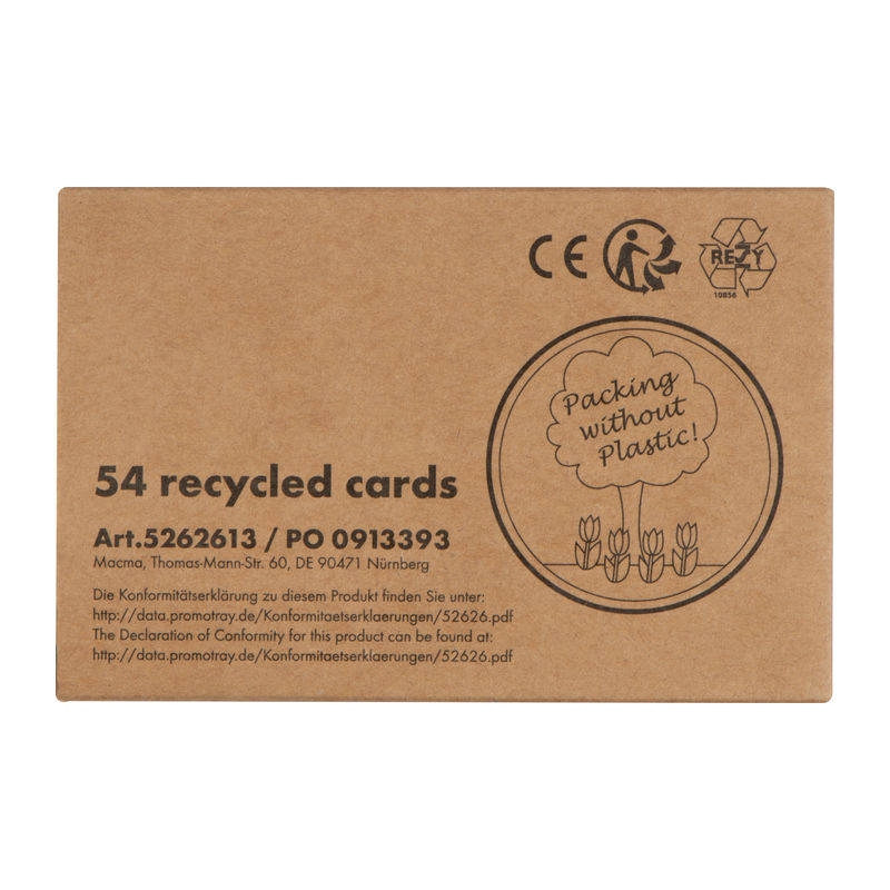 Classic card game with (Poker) made from recycled paper in a recycled cardboard box. Your logo will be placed on the box.