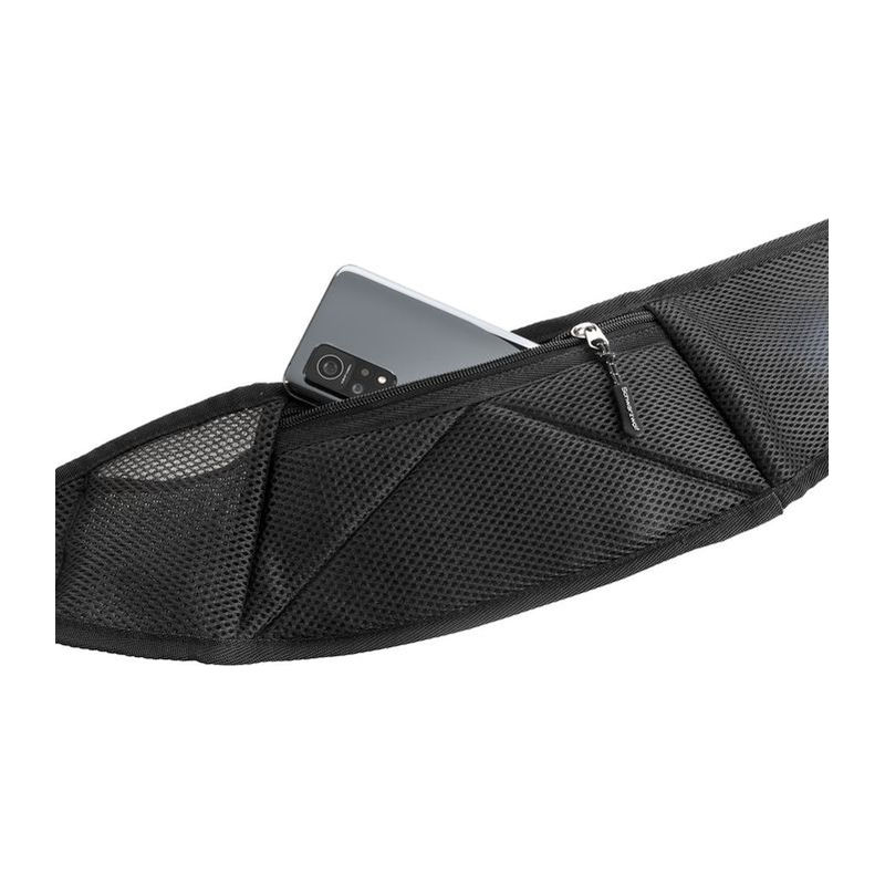 Schwarzwolf sports belt bag, thanks to which you will have all your personal belongings with you during sport. The belt bag includes large front pocket for a sports bottle, small front zipper pocket for a credit card and back zipper pocket with 19 x 10 cm size for a mobile phone. The belt bag can also be carried as a cross-body bag. Packed in a plastic bag with a paper hangtag.