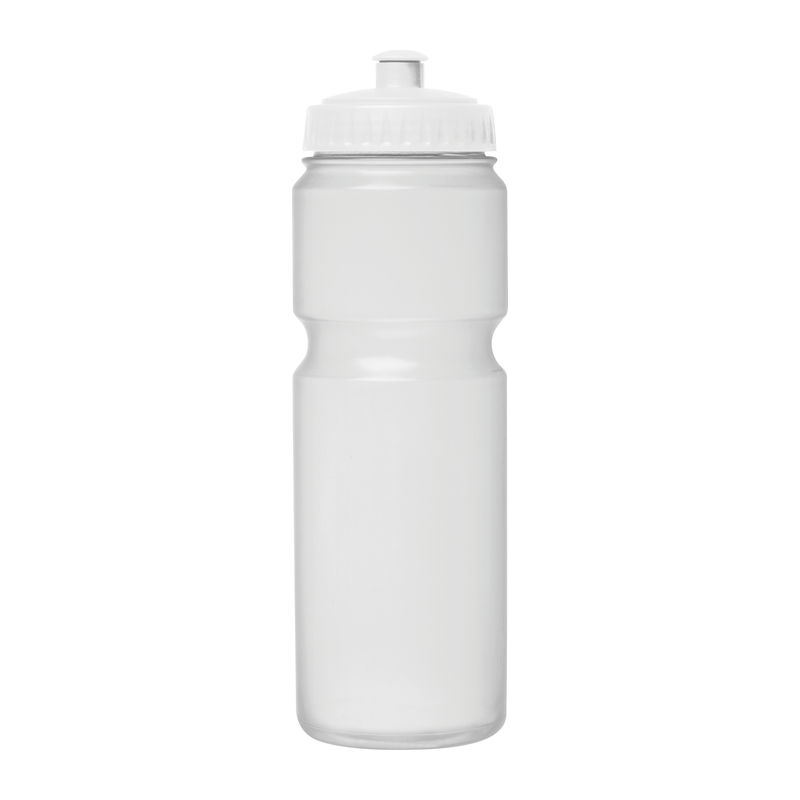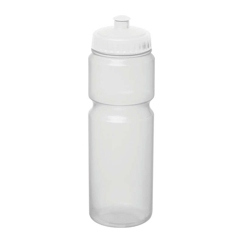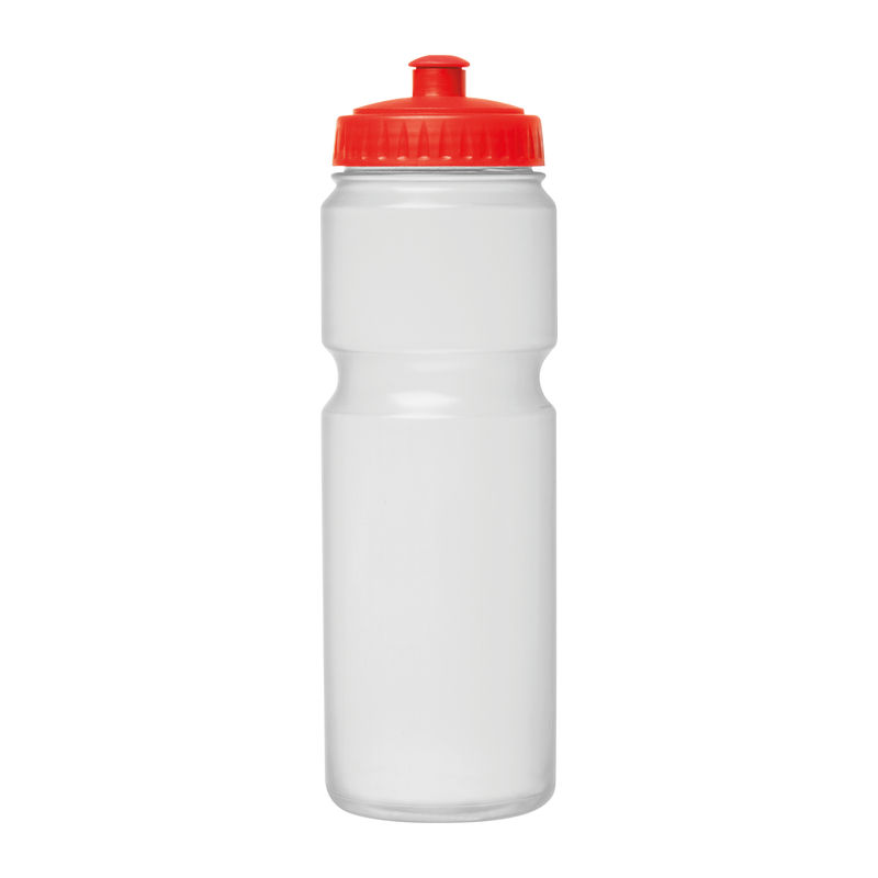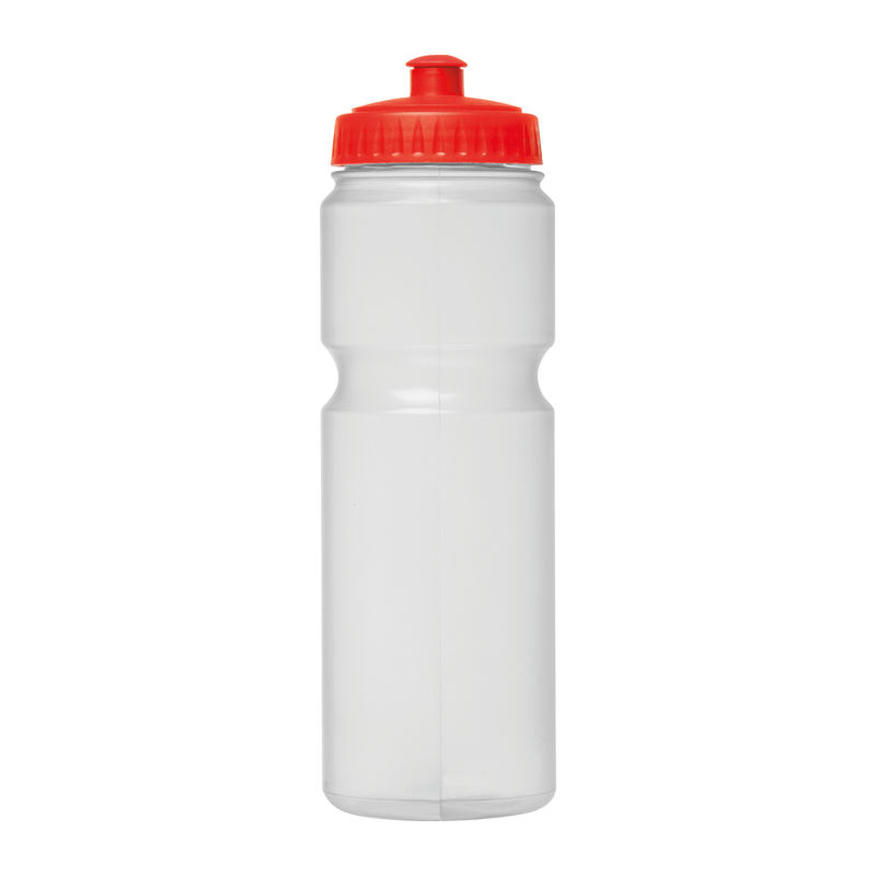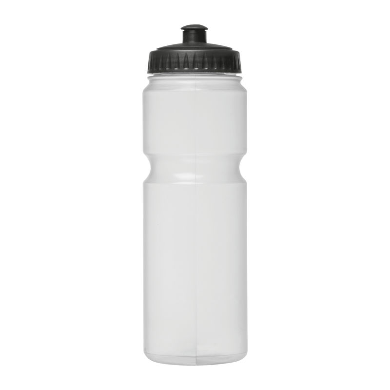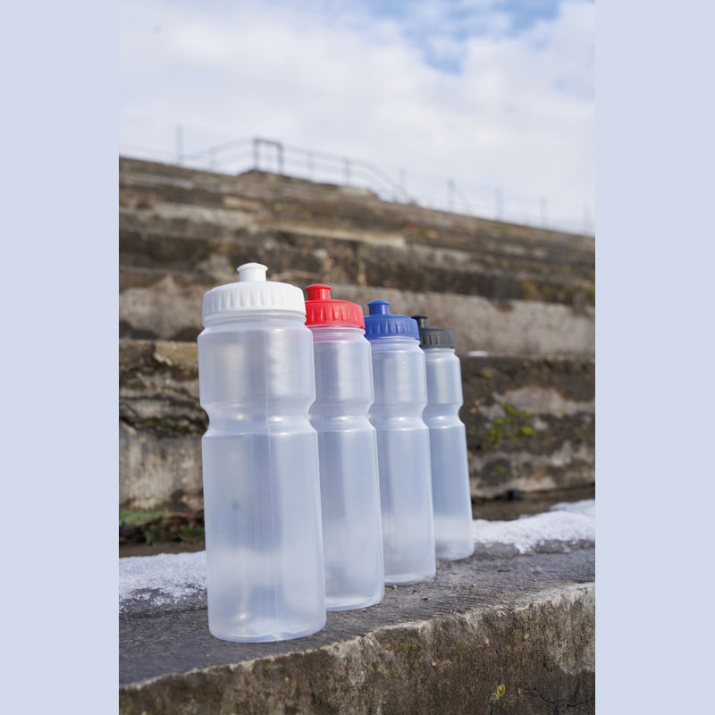 Sports drinking bottle made of plastic (BPA free) with 750ml capacity and sports cap. Your logo will be printed on the bottle.
