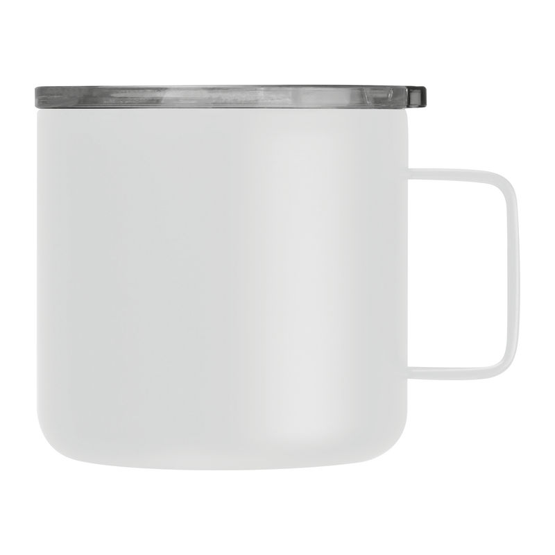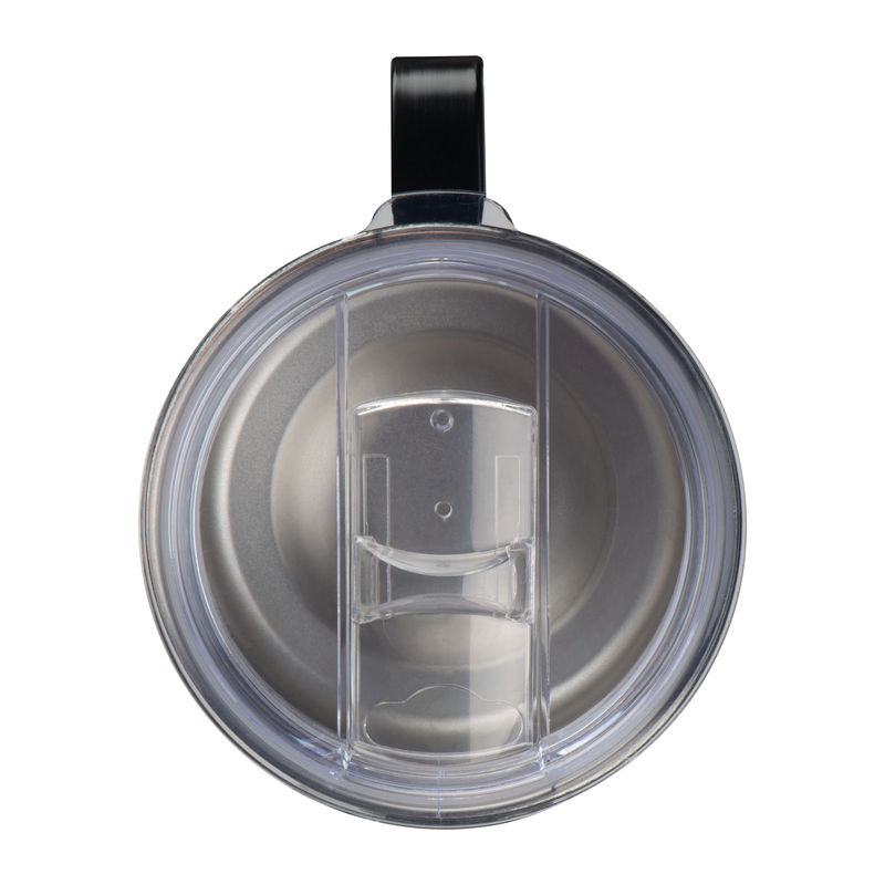 Stainless steel drinking cup with transparent lid with sliding drinking bar. Capacity 300 ml. Your advertisement will be engraved on the cup.