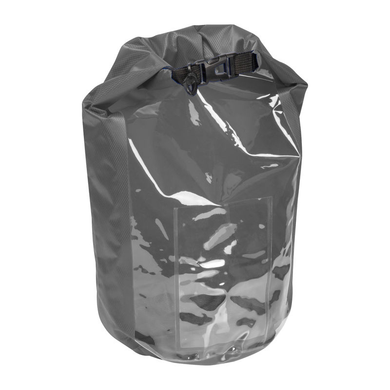 Waterproof, lockable bag with practical plastic carabiner for fastening purposes and a capacity of 10 litres. Your logo is printed on the transparent side.