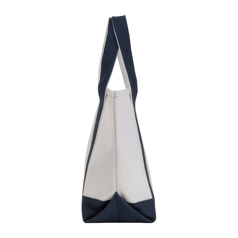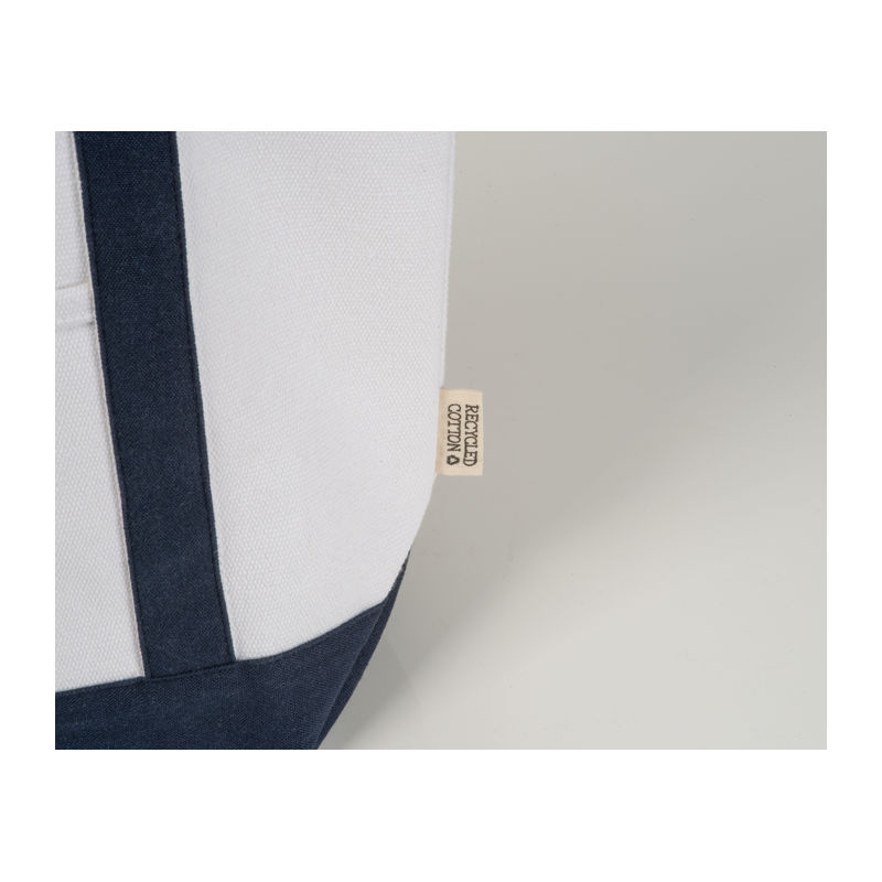 Majhna nosilna torba (730 g/m²) iz recikliranega bombaža z dvema barvnima dolgima ročajema in čvrstim spodnjim klinom. Vsestranska uporaba, npr. za nakupovanje, plažo itd. Praktičen žep z režami na sprednji strani. Na sprednji žep bomo natisnili vaš logotip.