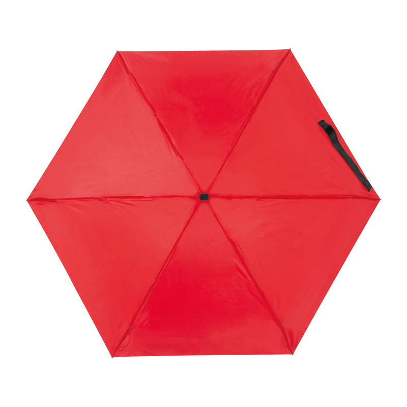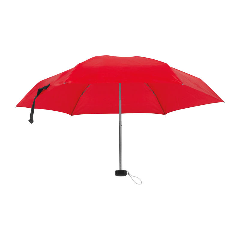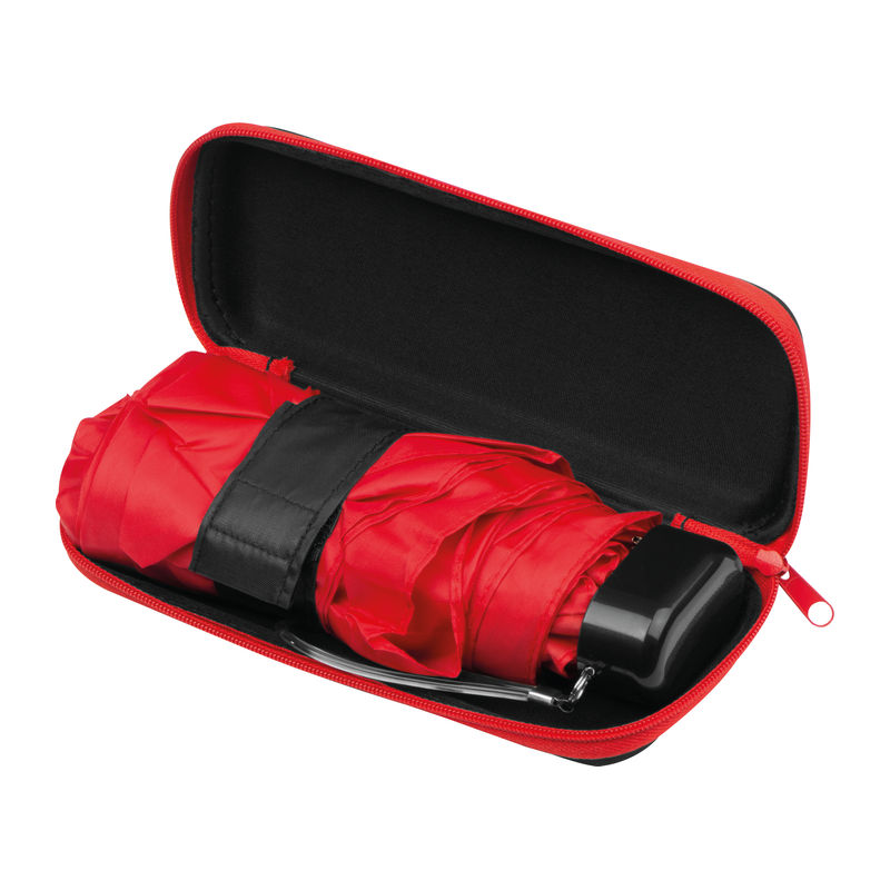 Mini dežnik iz poliestra 190T, pakiran v torbici z zadrgo EVA, za lažje prenašanje. Vaš oglas bo natisnjen na enem delu dežnika.
