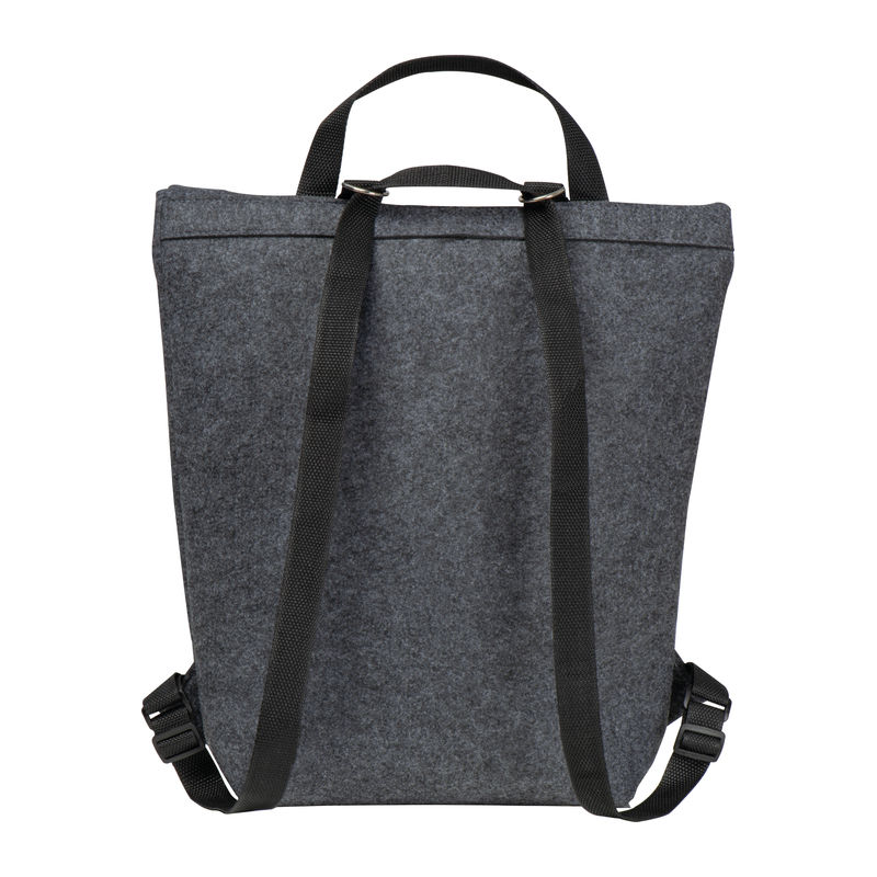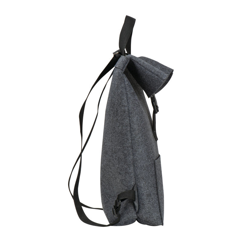 Velik nahrbtnik iz filca RPET z zavihkom in sprednjim žepom. Na sprednji žep bomo natisnili vaš logotip.